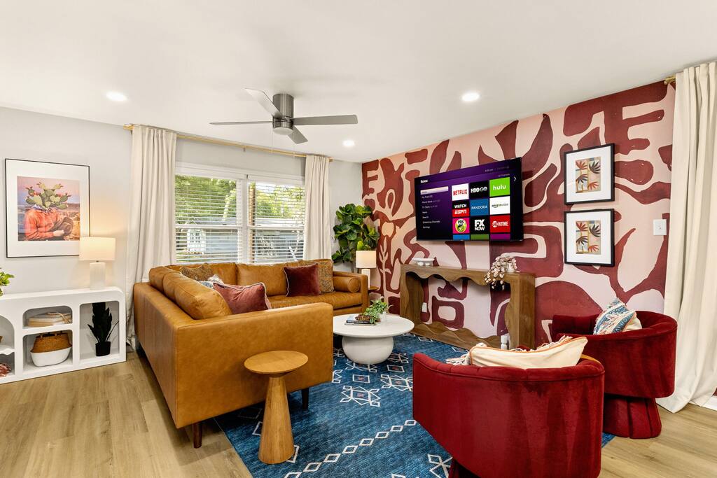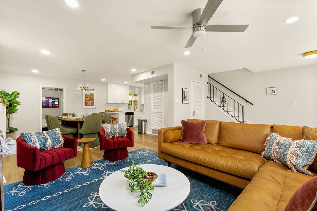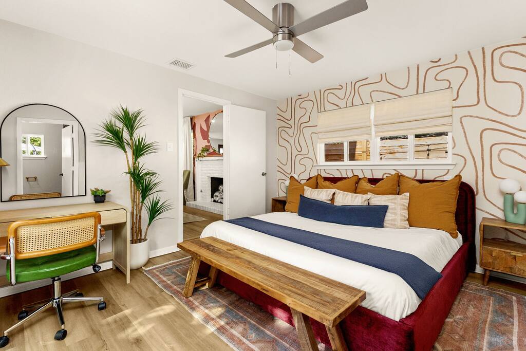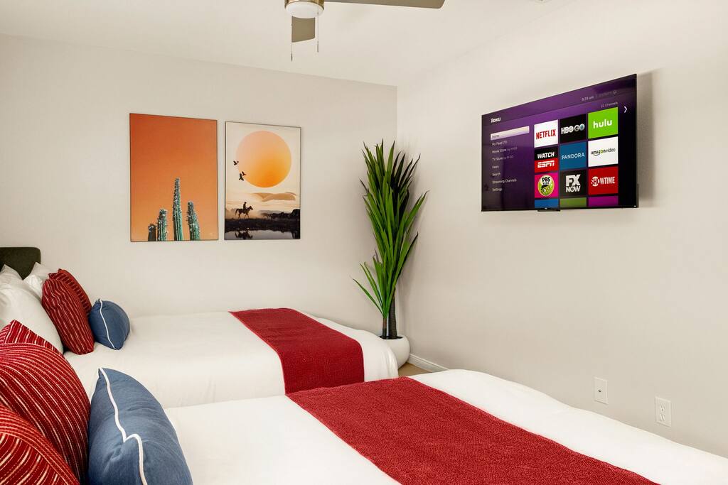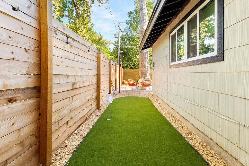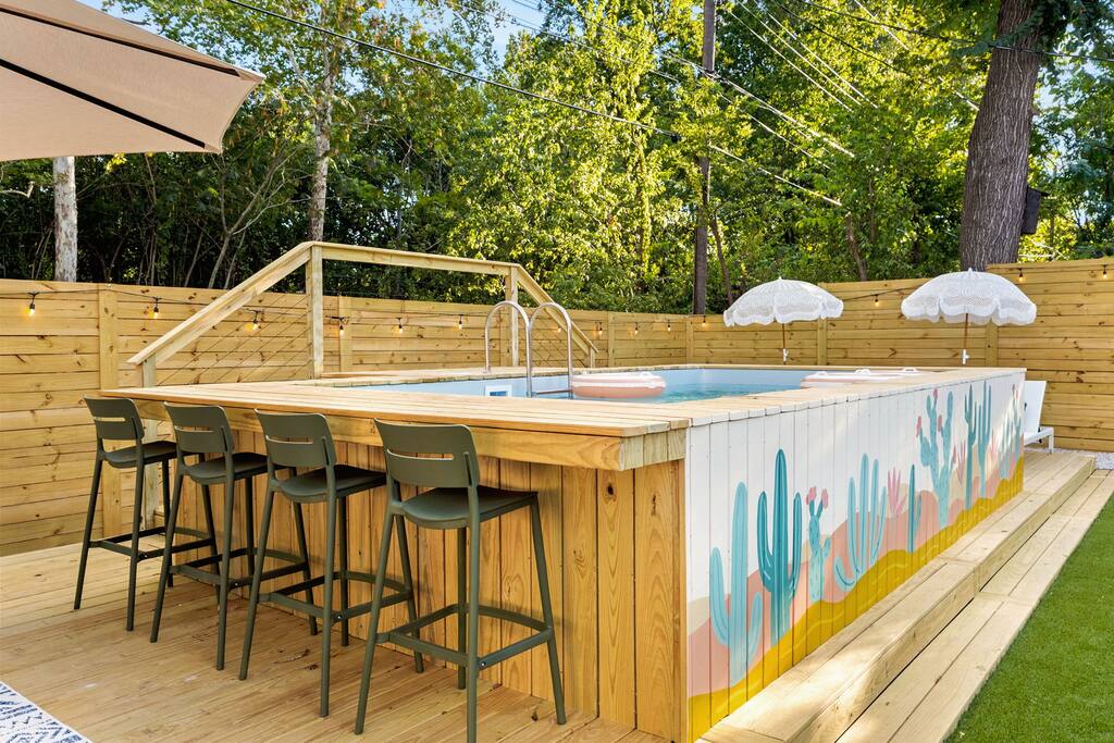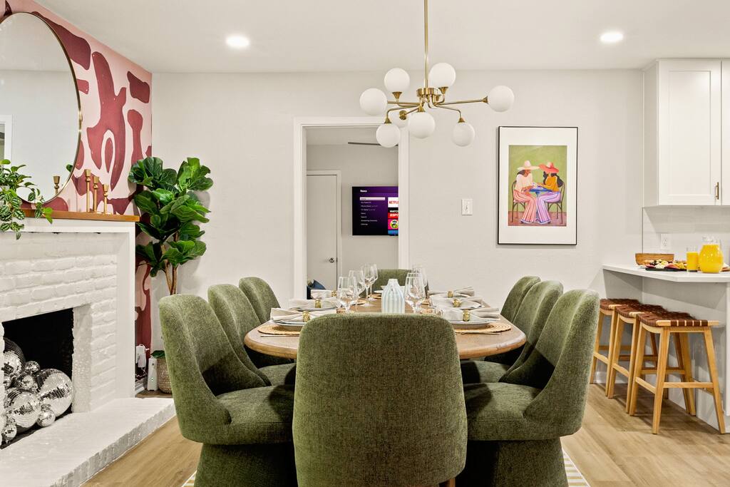 Centrally located just south of SoCo & downtown, our 4 bed / 3 bath retreat comfortably sleeps 14 and is packed with thoughtful amenities for an unforgettable Austin experience! LUXURY RESORT-STYLE BACKYARD: ☀ Heated pool for year-round swims ☀ Covered hot tub lounge with outdoor TV ☀ Cozy string-lit fire pit ☀ Mini golf green for some friendly competition! ☀ Full-size ping pong table ☀ Large outdoor dining table + grill ☀ Plenty of outdoor seating ☀ Yoga mats & yard games! PRIVATE MOVIE THEATER ROOM: ☀ 100-inch screen with 4k projector ☀ Immersive surround sound system ☀ Popcorn machine for true movie night vibes ☀ Get-ready station with large light-up mirrors! ☀ Retro arcade games ☀ Oversized sectional sofa with pull-out queen sleeper FIRST FLOOR COMFORTS: ☀ Open concept living & dining ☀ Fully stocked kitchen w/ stainless steel appliances ☀ Premium coffee station for your morning kick! ☀ King bedroom w/ ensuite bathroom + workspace ☀ Laundry room with washer & dryer SECOND FLOOR DREAMING: ☀ Double queen bedroom w/ ensuite bath + glam station! ☀ Second king bedroom ☀ Additional double queen bedroom ☀ Full hallway bathroom CLOSE TO EVERYTHING: » Downtown Austin → 10 min » South Congress (SoCo) → 6 min » Zilker Park (ACL) → 14 min » Rainey Street → 12 min » State Capitol → 16 min » UT Football → 18 min » Austin Convention Center → 17 min » The Domain → 25 min » Lake Travis → 35 min » Austin-Bergstrom Airport → 11 min Whether you’re lounging poolside, toasting under string lights, or getting ready for a night on the town, Sunset Social is where your Austin memories shine brightest. Designed with group getaways in mind, this home mixes resort-style fun with cozy cowboy touches—the perfect backdrop for a weekend with your favorite people in ATX.