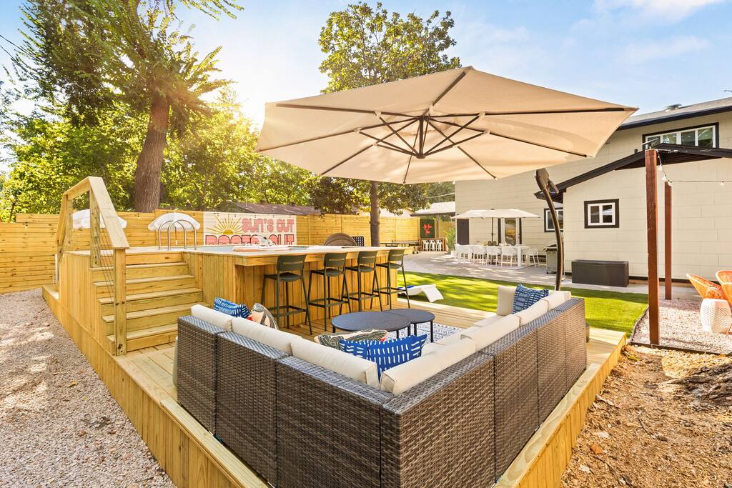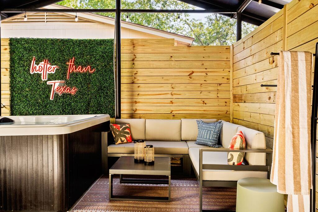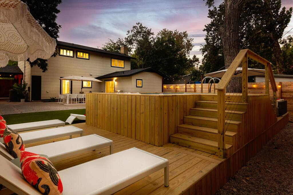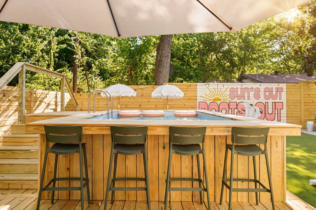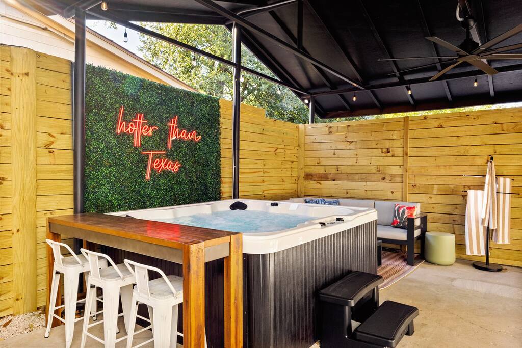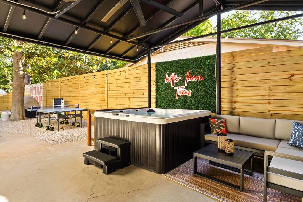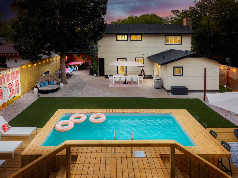 Welcome to Sunset Social, the Texas-chic retreat built for golden hour escapes, just 10 minutes south of downtown Austin! ☀ Resort-style backyard with heated pool ☀ Covered hot tub lounge with bar seating ☀ Movie theater room + popcorn machine! ☀ Mini golf putting green ☀ Cozy string-lit fire pit ☀ Yoga mats & yard games ☀ Multiple glam stations for the whole crew Perfect for bachelorettes, family fun, and Insta-worthy getaways! Special availability for ACL, F1, and SXSW!